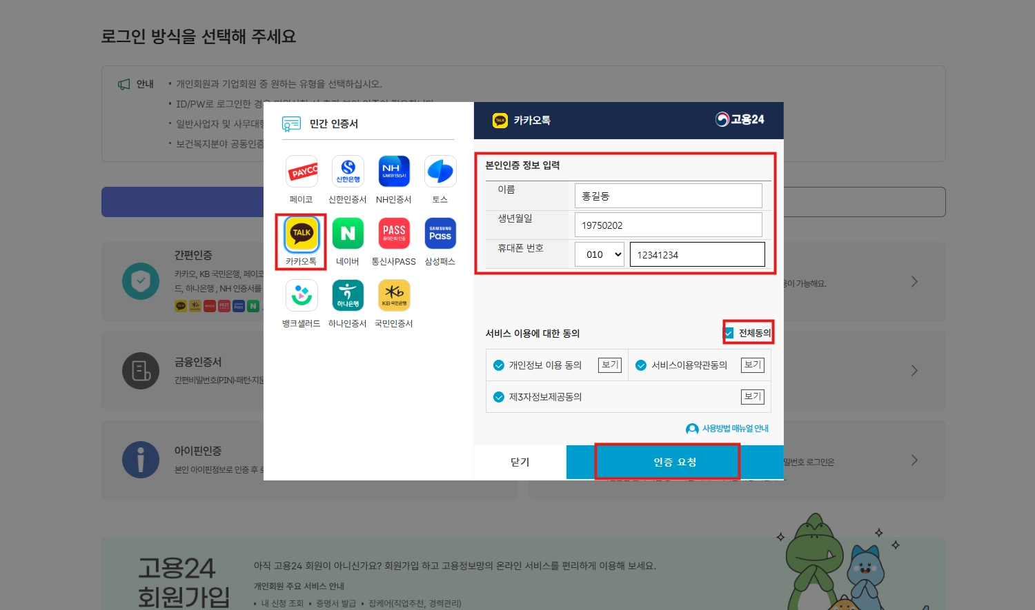 본인인증 정보 입력