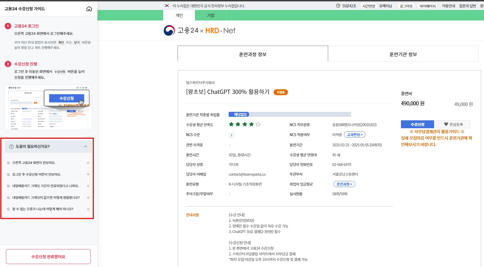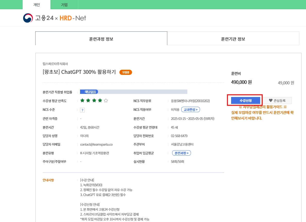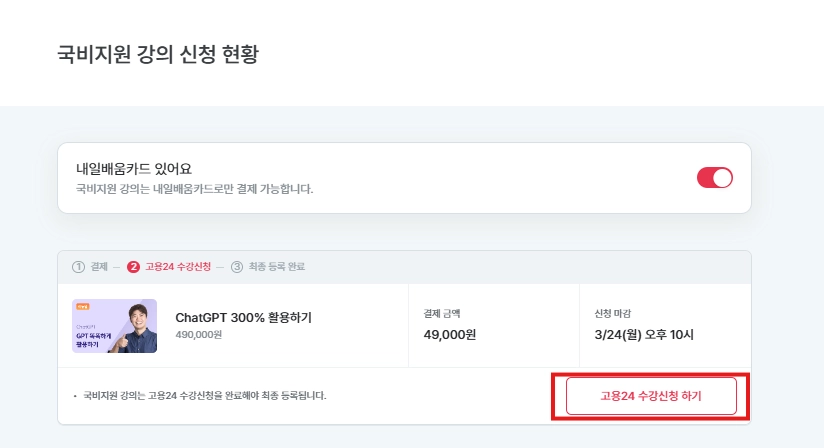 3. 고용24에서 수강신청하기