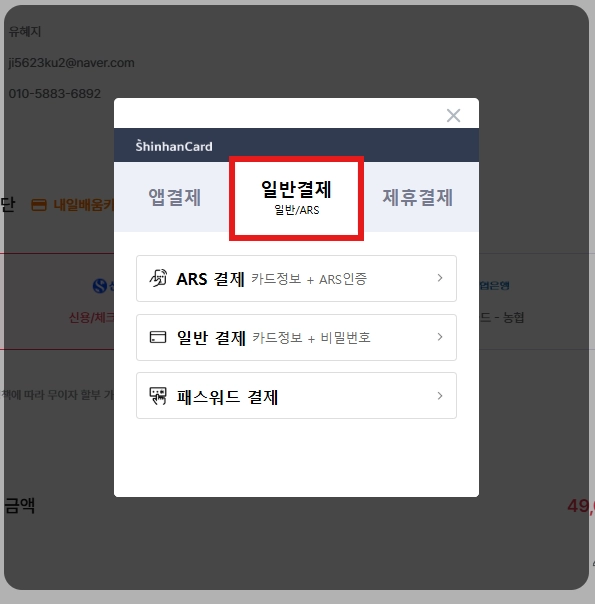 → [일반 결제]를 클릭