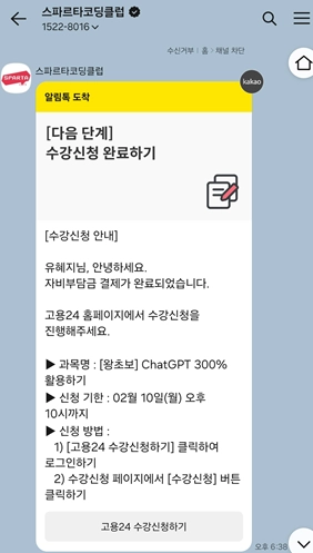 ❹ 스파르타코딩클럽 카카오톡이 왔다면 정상적으로 결제가 완료된 것이에요!