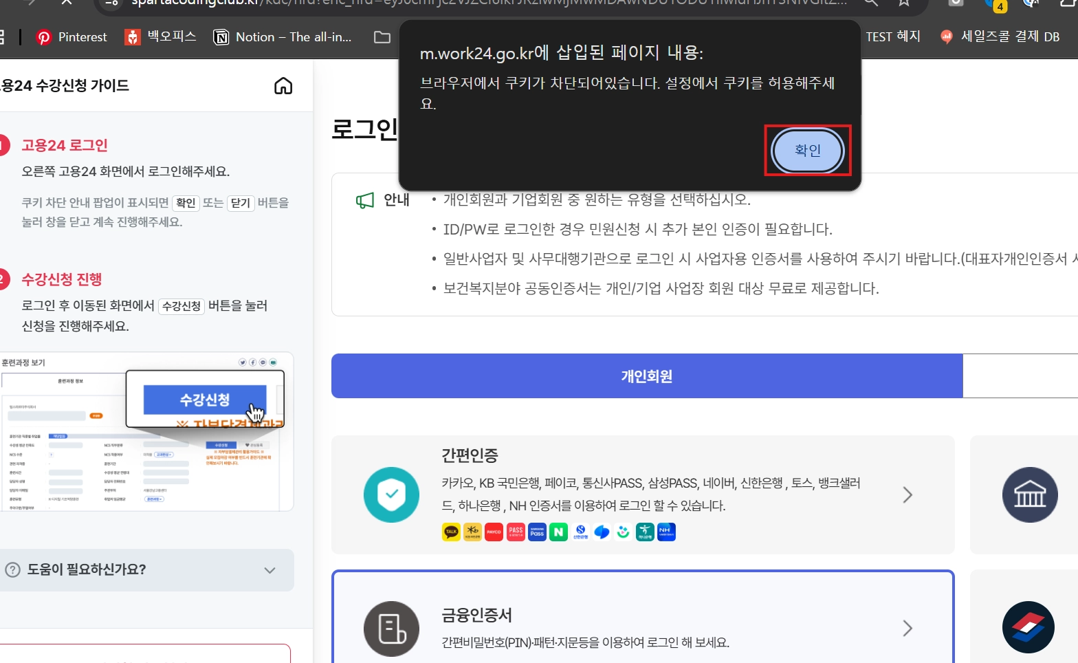 *본인 명의의 내일배움카드가 아니거나 스파르타와 고용24에서 신청한 과목이 다르면 등록이 불가해요.