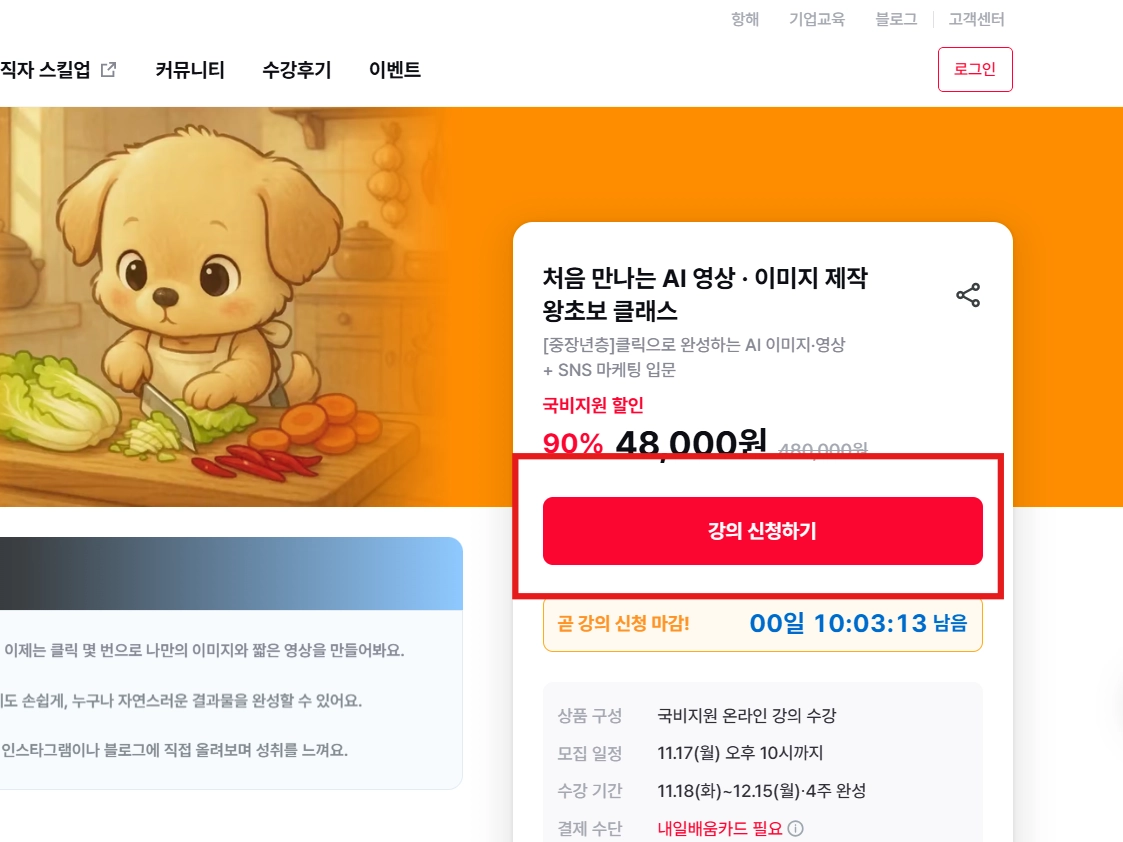 ❶ 바로 옆 [수강 신청하기] 버튼 클릭해요