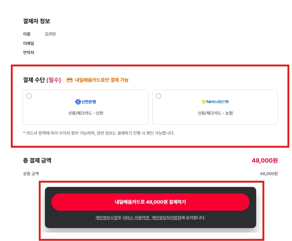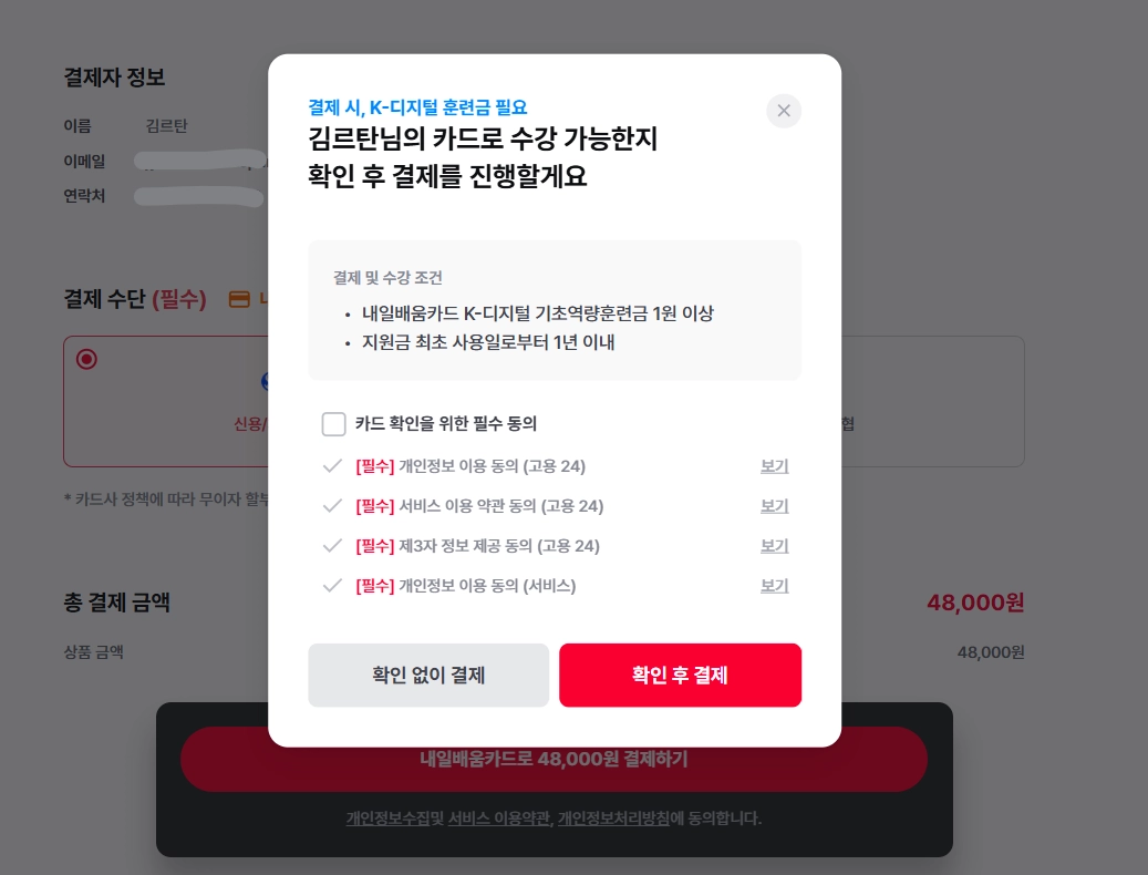 *필수 동의 클릭 / [확인 후 결제] 클릭